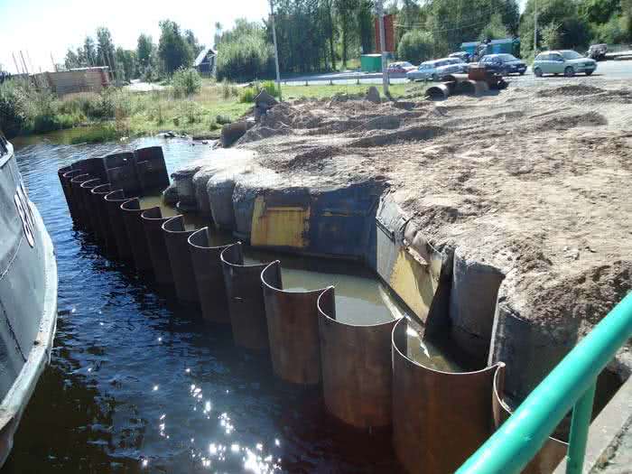 Строительство берегоукрепительных сооружений из шпунта Ларсена при возведении мостовых опор на строительстве автодороги для транспортировки золошлаковых материалов